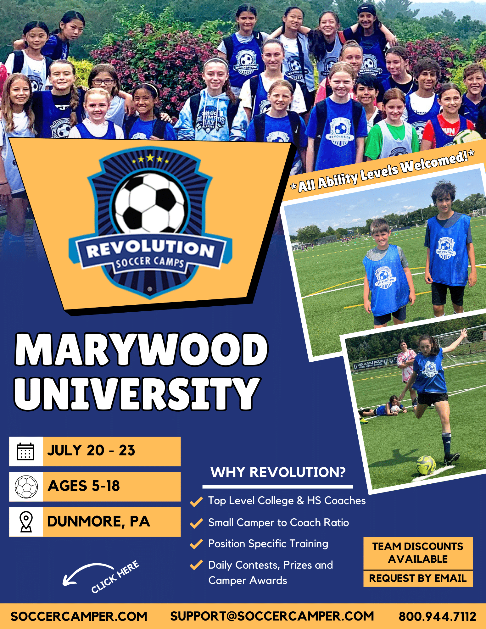 We’re excited to host the Revolution Soccer Camps at Marywood University. Join us and improve your soccer skills this summer!