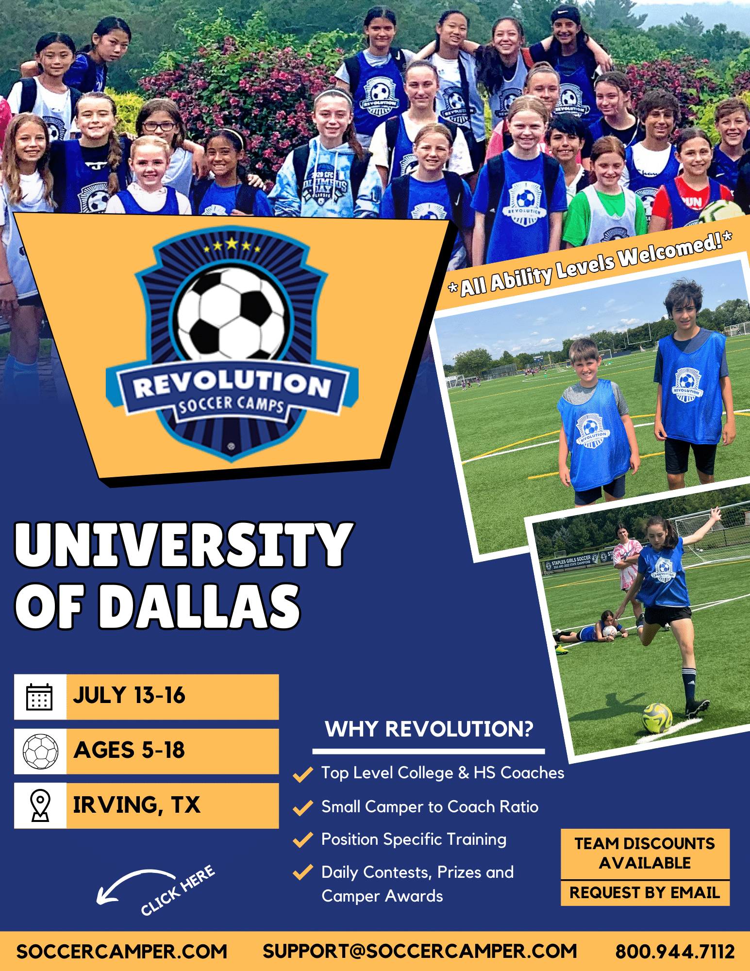 We’re excited to host the Revolution Soccer Camps at The University Of Dallas. Join us and improve your soccer skills this summer!