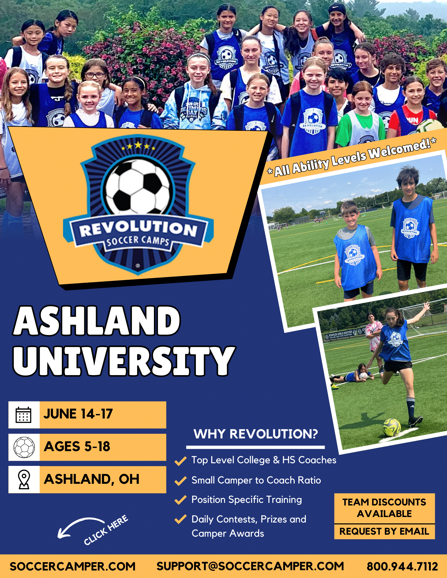The Brooks G. Hull Intramural Field is used for Intramural Sports and recreation. We’re excited to host the Revolution Soccer Camps at Ashland University. Join us and have fun while improving your soccer skills this summer!